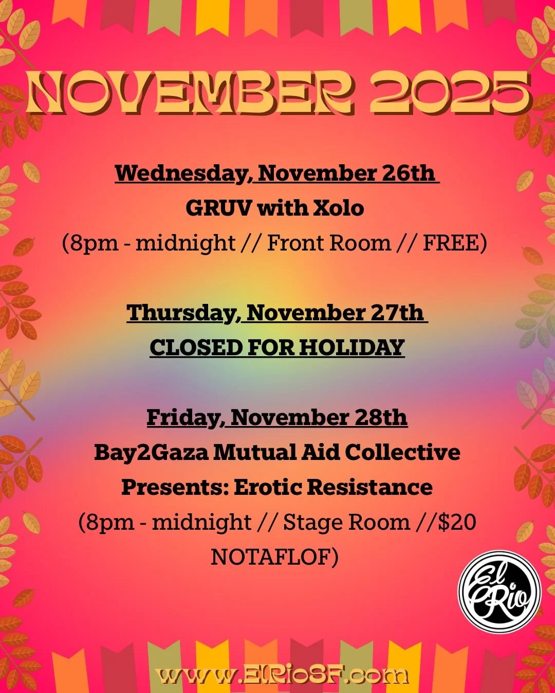 El Rio began her life in 1978 as a Brazilian Leather Gay Bar aiming to serve the surrounding Mission District neighborhood and all good folks. Our founders, Malcolm and Robert, ran things until their retirement when the helm passed to The Crew. We are a queer run community space, an event space, a gathering place, a venue, a Mission mainstay and many other things to many people. We are grateful to our wonderful patrons and community for keeping us alive. β€οΈ
